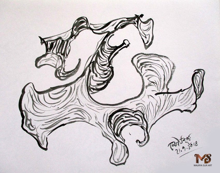 Medium: Water Color Line Drawing Dimension: 64 x 84 cm Date: 3-10-2018